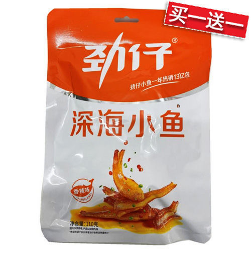 买一送一! 劲仔 深海小鱼 香辣味 零食小鱼干 110g 日期 2026-04-05