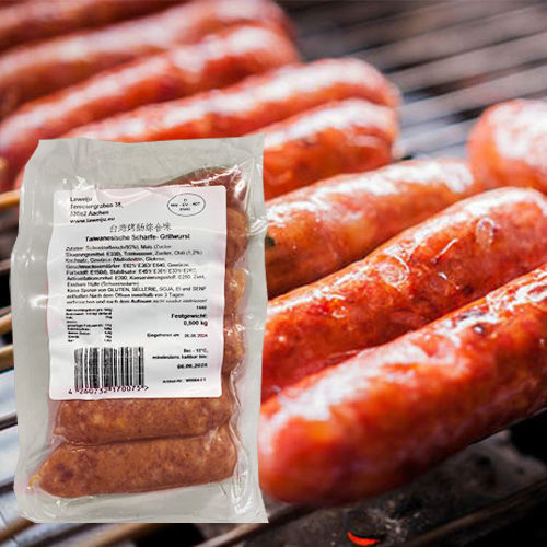 3 Taiwan-Grillwurst,1 Taiwan ohne Mais(Zutaten= ohnen Mais), 1 Taiwan-Pfeffer(Zutaten+1,2% Pfeffer), 1 Taiwan-Knoblauch(Zutaten+1,2% Knoblauch),