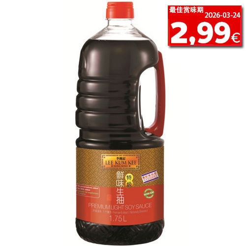 Wasser, Salz, Soja 11%, Zucker, Weisser Zucker, Konservierungsmittel (E211), Geschmacksverstärker (E631, E627), Enthält Soja, Weizen.