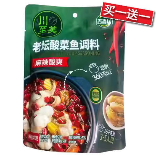 买一送一! 吉香居 老坛酸菜鱼调料 麻辣酸爽 410g 日期 2025-12-26