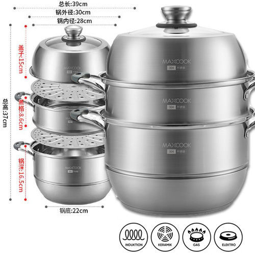 美厨 大容量三层蒸锅 外径30cm 适合电磁炉 电陶路 火灶
