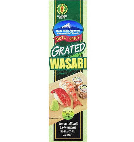 Meerrettich 24%, Süßstoff: Sorbit, Zucker, Maisstärke, Rapsöl, Salz, Sojamehl, Wasser, geriebener Wasabi 1,6%, Aroma, Kurkuma, Zitronensäure, Verdickungsmittel: Xanthangummi, Färbung: Brilliant Blue FCF